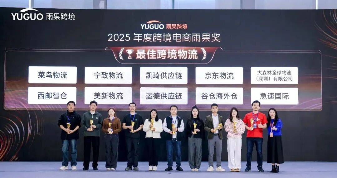 美新物流凭借稳定高效的美线物流服务、全链路清关履约能力、数字化跨境供应链解决方案,在行业权威评选中脱颖而出,荣获2025年度跨境电商雨果奖《最佳跨境物流》奖。